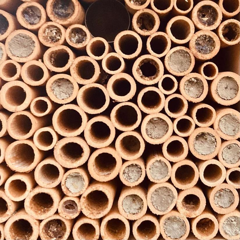 A bug hotel is a small structure, usually made of wood and containing tubes of different sizes, that insects can use for shelter.