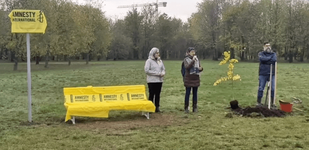 Così è scritto sulla targa svelata a parco Montecucco di Piacenza, a fianco una panchina gialla, dedicata ai diritti umani. È una delle iniziative pensate da Amnesty International per festeggiare i sessant’anni della nascita del gruppo provinciale dell’associazione.
